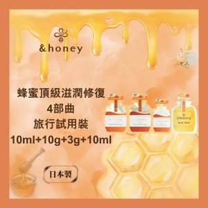 &honey 安蒂花子蜂蜜頂級滋潤修復4部曲旅行試用裝 10ml+10g+3g+10ml (香港代理)