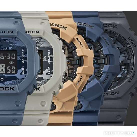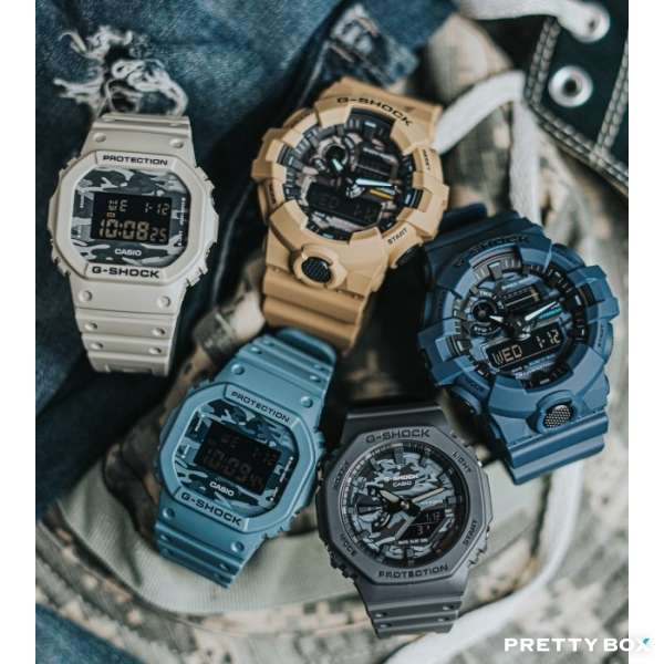 一款適合您在野外到城市使用的手錶,顏色配搭得宜,適合任何場合佩戴。錶盤上飾有原創 G-SHOCK 迷彩圖案。
