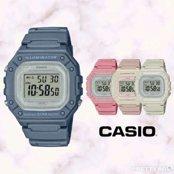 標誌性方形錶面搭配樹脂錶帶。這種運動型設計具有色彩繽紛的流行元素,無論您的日程安排如何,都能讓您無縫銜接正裝到各種休閒場合。不僅款式百搭,而且實用。配備多種數碼功能,便於在黑暗中讀時的 LED 燈、1/100 秒計時功能、鬧鈴和日曆,並設 50 米防水性能。
