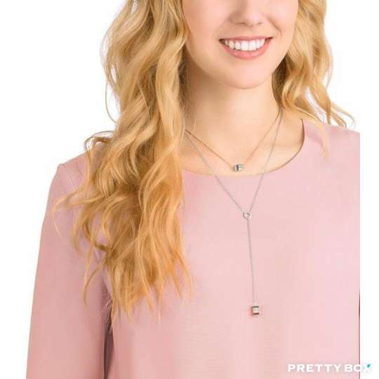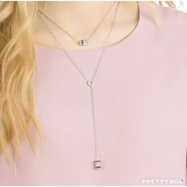 A beautiful necklace set that instantly adds luxury to any outfit. Offering a barrel shaped design, made from rose gold tone plated material and studded with a collection of black and clear Swarovski crystals, hanging from a silver tone chain.