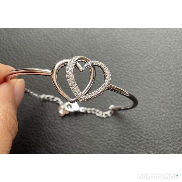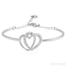 With its elegant heart design a symbol of Everlasting Love this delicate and highly refined Bangle would make an ideal Valentine's Day gift. Featuring sparkling clear crystals set in classic pave and rhodium plating, it will add elegance to any simple, modern day or evening look.