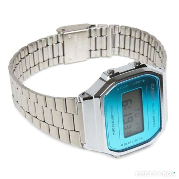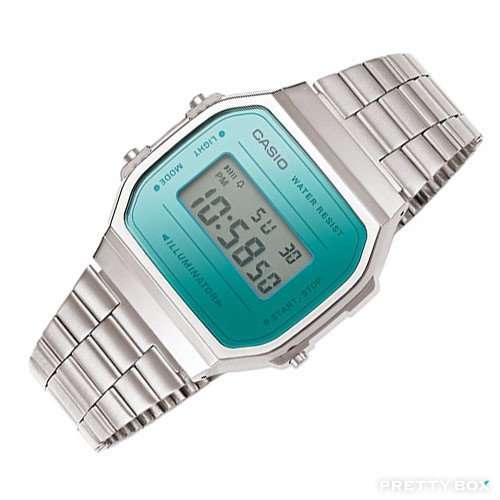 CASIO A168WE系列推出全新配色,外觀以復古造型設計為主,新色中提供了五種配色選擇,不繡鋼錶帶色系包含玫瑰金、金及銀色三種選擇,搭配不同色系的錶盤顏色,豐富且多元的多種選擇,是款經典且復古的設計,全系列具備生活防水、1/100秒計時碼表、鬧鈴、LED背光照明、全自動月曆、12/24制切換等多項功能。