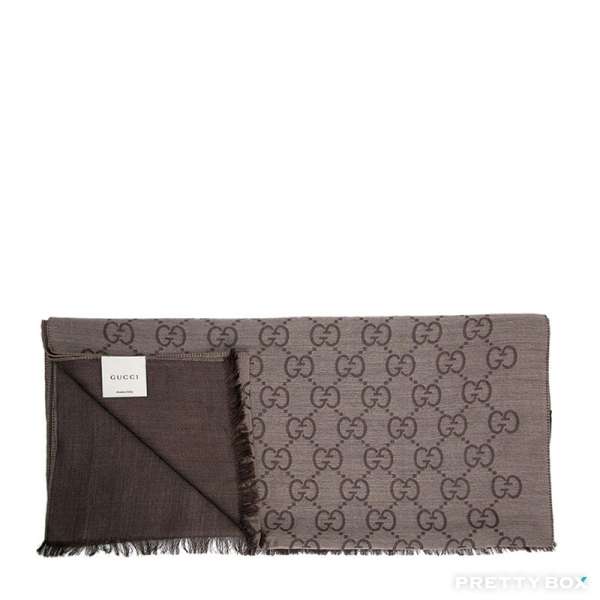 GG Logo 啡色羊毛蠶絲圍巾頸巾 165904-3G646-9664