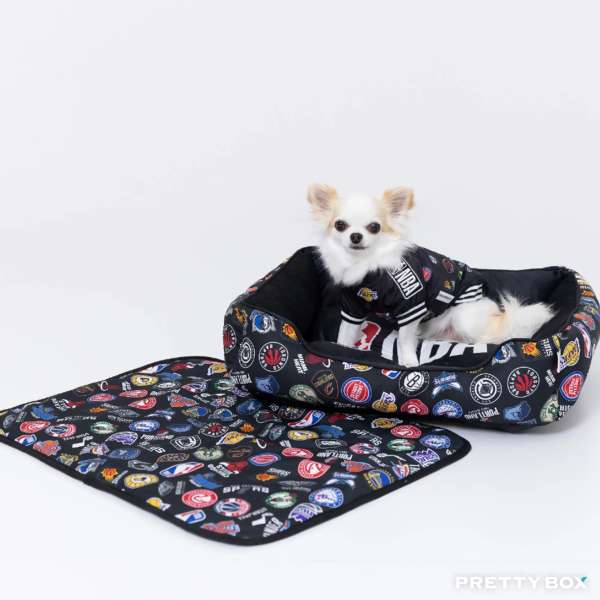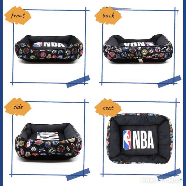 -為狗狗和貓咪準備的蓬鬆放鬆的床,上面印有所有NBA球隊的圖案