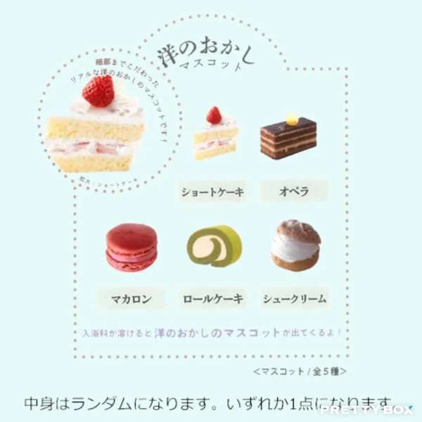- 共有 5 種神秘小玩具,每個入浴球內含有1個隨機神秘小玩具