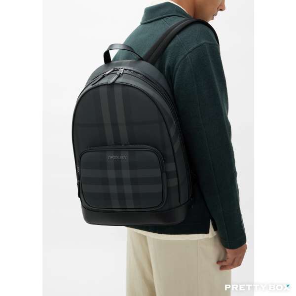 Burberry 格紋後背包,搭配單色襯裡設計。收納空間充裕,搭配皮革提柄及絎縫背部裁片,提升舒適度。