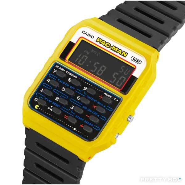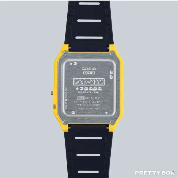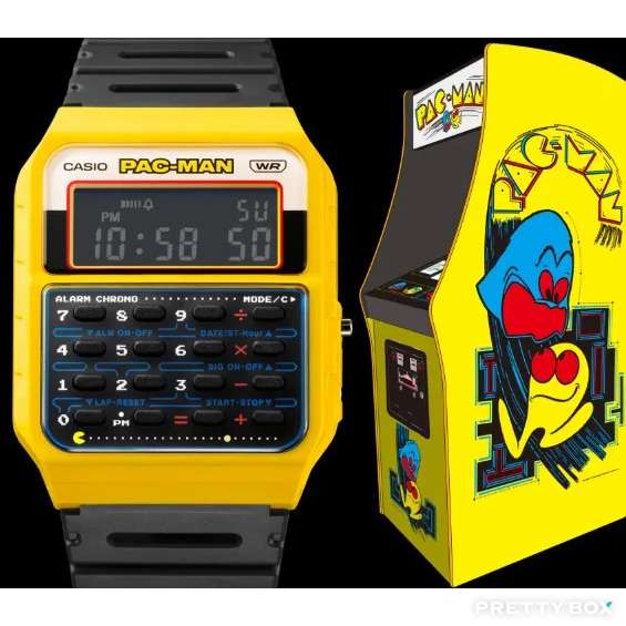 隆重呈獻特別聯乘系列,慶祝 Casio 手錶面世 50 週年以及準備好迎接 PAC-MAN 於 2025 年面世 45 週年。憑藉玩味十足的設計和懷舊的觸感,此系列將 Namco Bandai Entertainment 廣受歡迎的 PAC-MAN 遊戲世界活現眼前。 錶面的設計讓人想起遊戲畫面中熟悉的角色在迷宮中走動的遊戲場面,並由黃色錶圈勾勒出街機遊戲機的外觀。錶背刻有遊戲角色和 PAC-MAN 標誌。錶帶採用生物基樹脂製成,此物料有助減少對環境的影響。採用街機遊戲機設計的特別包裝。