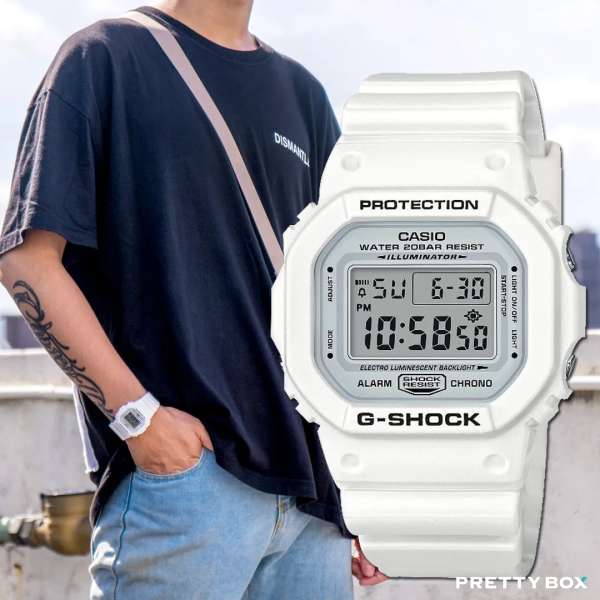 功能 手錶品牌 G-SHOCK 致力尋找能在新設計中融入世界文化的方式。新型號的白色設計在您手腕上為夏日服飾增添清新的感覺。 這些型號的白色主題與陽光明媚的沙灘完美配合,並為清新的夏日時裝添上點綴。錶框和錶帶的設計以白色為主,襯托出夏日色彩。黑色點綴元素與白色成強烈對比,且為手錶增添堅固的感覺。 錶款以與原始 G-SHOCK 風格一致的方形 DW-5600 為基礎。 從夏日旅遊到一般休閒時尚生活,這一切讓手錶適合全年任何場合使用。