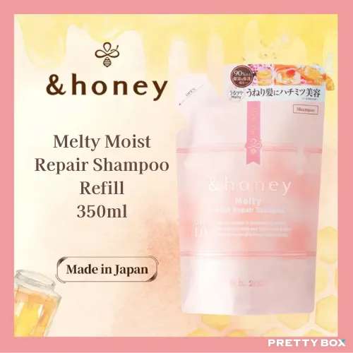 & Honey (Melty Moist Repair) 洗髮水,產品內90%以上均為有機精油、玻尿酸等保濕&保護成分,有機養分充盈髪芯,喚醒髮絲鎖水力量。精緻黃金蜂蜜配比,深入髪芯,高倍鎖水,提升秀髮鎖水力,增加秀髮光澤度。天然無添加配方。散發甜蜜玫瑰蜂蜜香。
