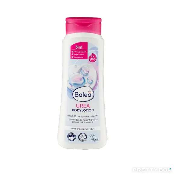 - Balea 尿素身體乳為肌膚注入豐沛水分,帶來持久舒適感受,適合每日使用。它能提供 48 小時強效舒緩保濕,有助維持肌膚天然微生態平衡,減輕因乾燥引起的緊繃感,並強化肌膚屏障。產品蘊含 5% 尿素——尿素是肌膚天然存在的高效保濕因子。同時添加乳木果油、維生素 E 及尿囊素,進一步滋養修護肌膚。本產品配方不含微塑膠及水溶性純合成聚合物。