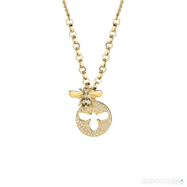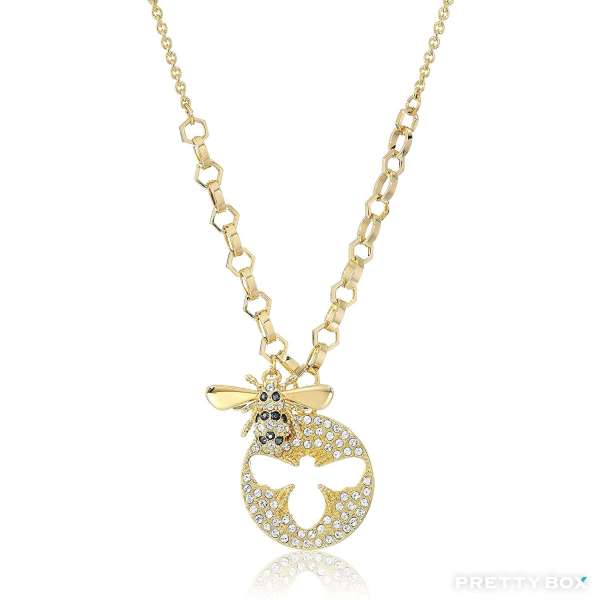 - 這款驚豔奪目的項鏈綴有一枚密鑲Swarovski水晶的蜜蜂裝飾,讓您全情投入夏日的懷抱。華麗耀眼又活潑跳脫的設計,可為任何造型注入施華洛世奇的純淨光彩。而時尚迷人的鍍金色飾鏈更以現代造型的蜂巢扣環為特色。另有同款首飾以供選購。