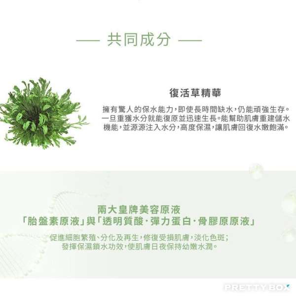 蘊含高效補濕鎖水成分復活草精華,復活草能於極乾燥的地方生長達一個世紀