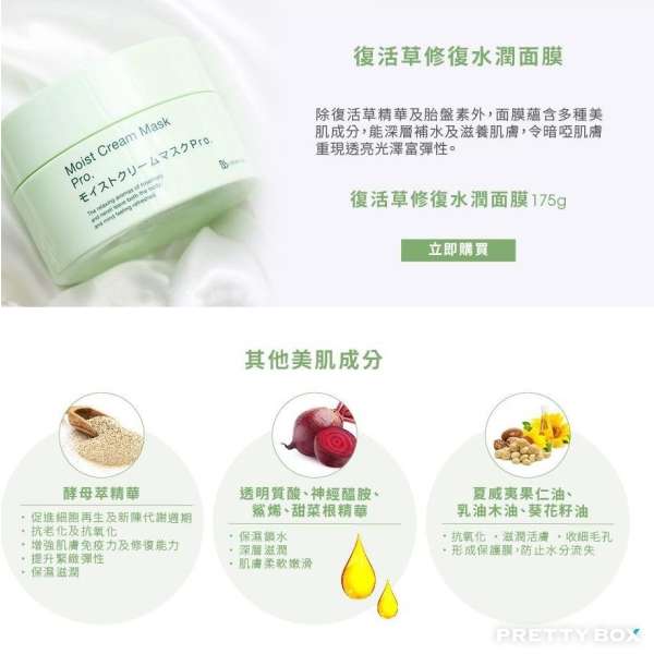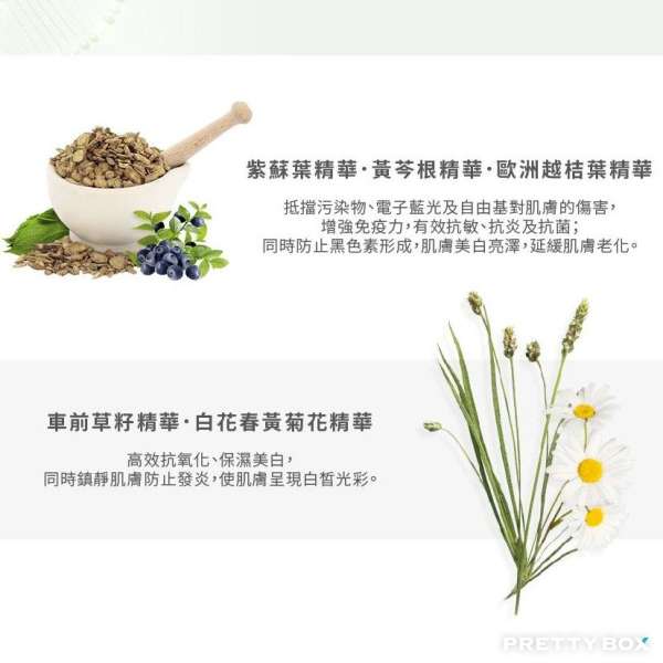 酵母精華、胎盤素及多種美肌成分,滋養肌膚,並促進血液循環及抗氧化,令暗啞肌膚重現透亮光澤富彈性。
