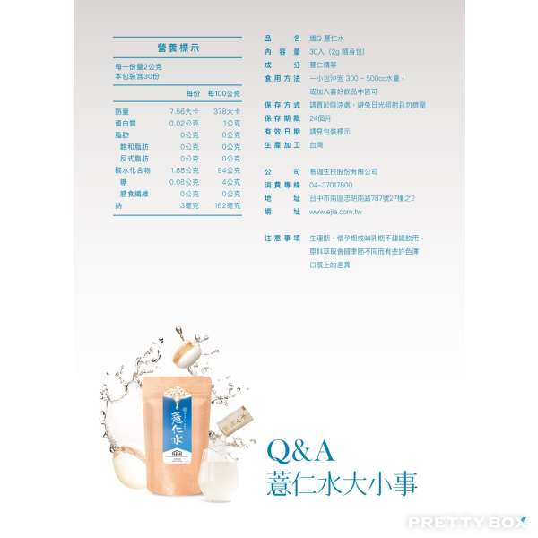 - 嚴選雪白大薏仁30倍濃縮水萃精華