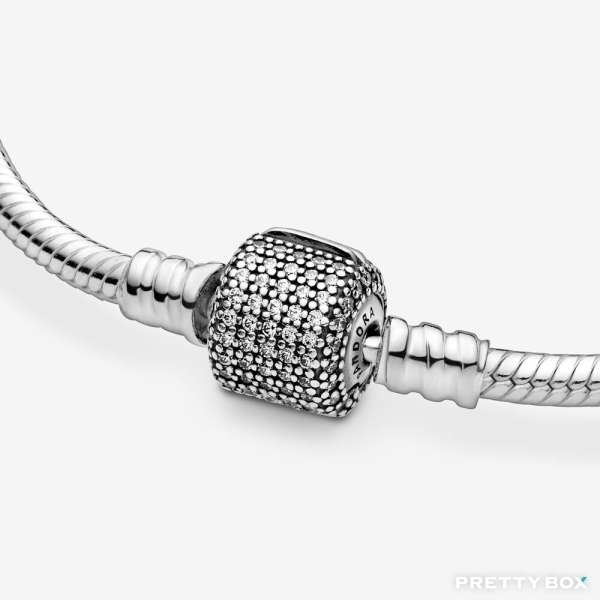 經典的Pandora串飾手鏈經過昇華,採用流光溢彩的密鑲設計,散發迷人魅力。這款時尚的蛇形手鏈以925 銀精製而成,配有圓桶扣,並飾上閃爍的立方氧化鋯石。既可單獨佩戴,亦可盛載您擁有的Moments系列固定夾和串飾。