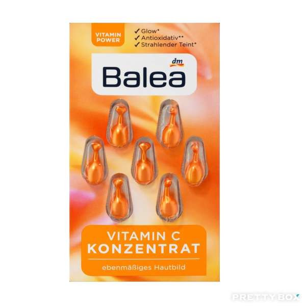 - Balea維他命C精華膠囊通過活性能量呵護特殊護理配方,為您的皮膚提供寶貴的成分。含有維他命C和E及橙油的配方可保濕及抗氧化,定期使用可刺激皮膚自身的膠原蛋白生成,令肌膚變得如天鵝絨般柔滑。