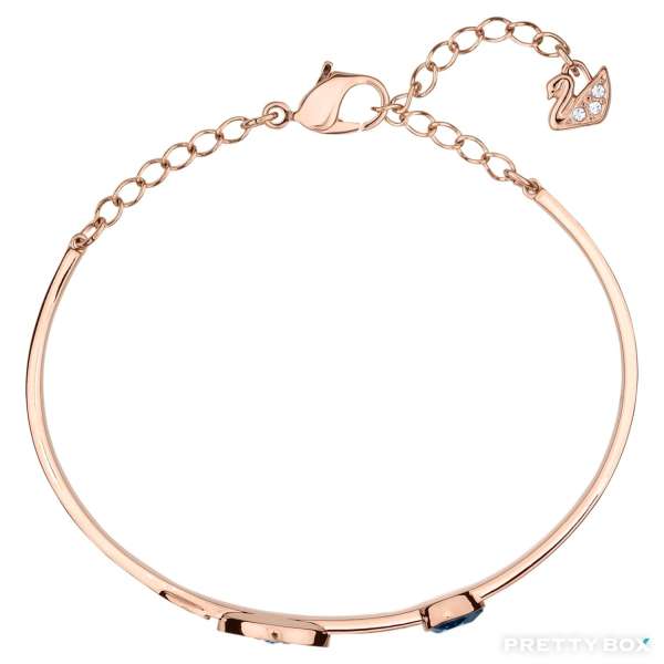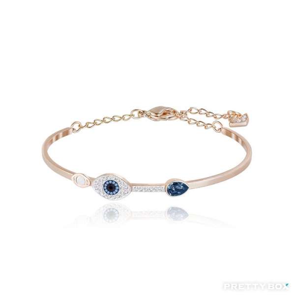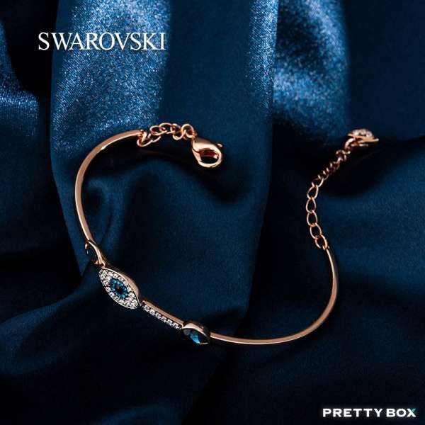 這款融入多種鍍層的驚豔手鐲,以鍍玫瑰金色金屬、密鑲Swarovski水晶和藍色品牌水晶,營造矚目耀眼的對比效果。除帶有兩枚眼睛裝飾和一顆藍色水滴形品牌水晶外,此手鐲更融入了方便調校尺寸的搭扣,讓佩戴時更舒適貼合。就用它來配襯其他手鐲,展現時尚迷人的風采。
