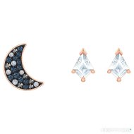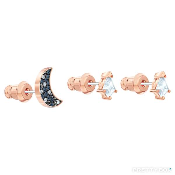 這款百搭的三合一穿孔耳環套裝, 與您以夜空為靈感的造型巧妙搭配。其中兩枚耳環鑲有優雅迷人、風箏形切割的SWAROVSKI 仿水晶,而月亮裝飾則象徵希望及夢想,並綴有精緻小巧、展現漸變效果的藍色密鑲SWAROVSKI 仿水晶。您可嘗試以不對稱的方式來搭配這些鍍玫瑰金色耳環, 展示時尚十足的個人風格。